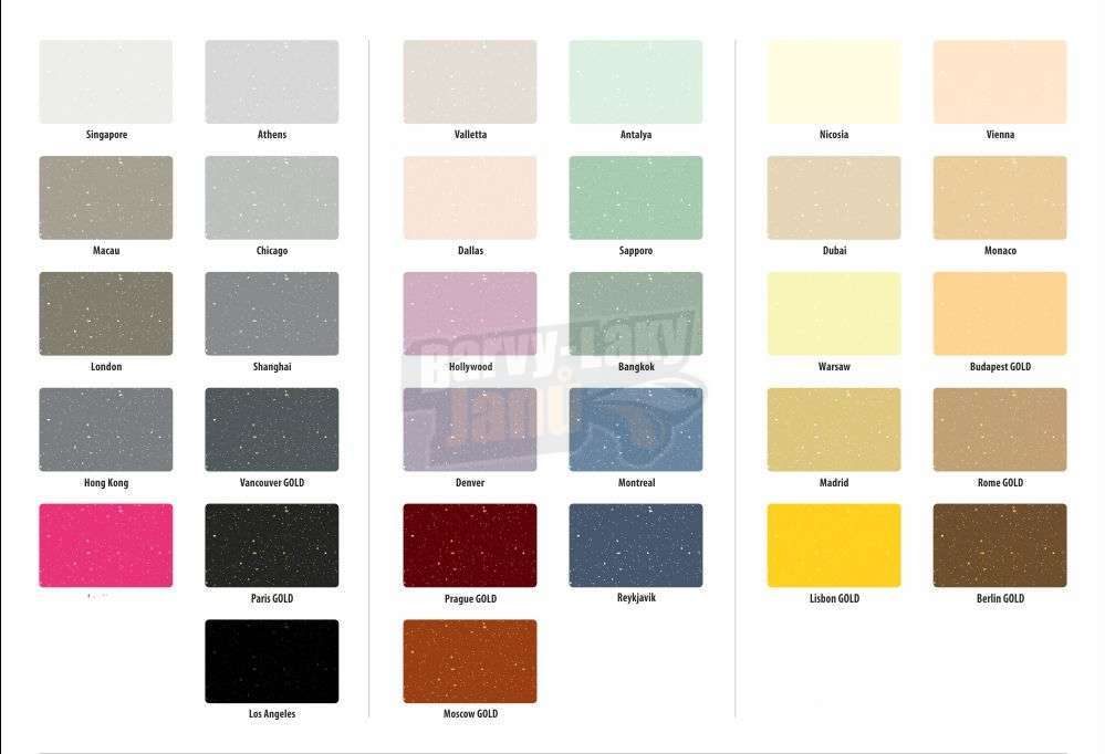 Je pro svou velmi jednoduchou aplikaci ideální výrobek pro domácí použití. Není zde potřeba žádné speciální nářadí ani extrémní zručnost. Barva se jen smíchá a pak se natírá válečkem. Vyberte si z pestré řady odstínů nebo byste rádi ještě více třpytek?