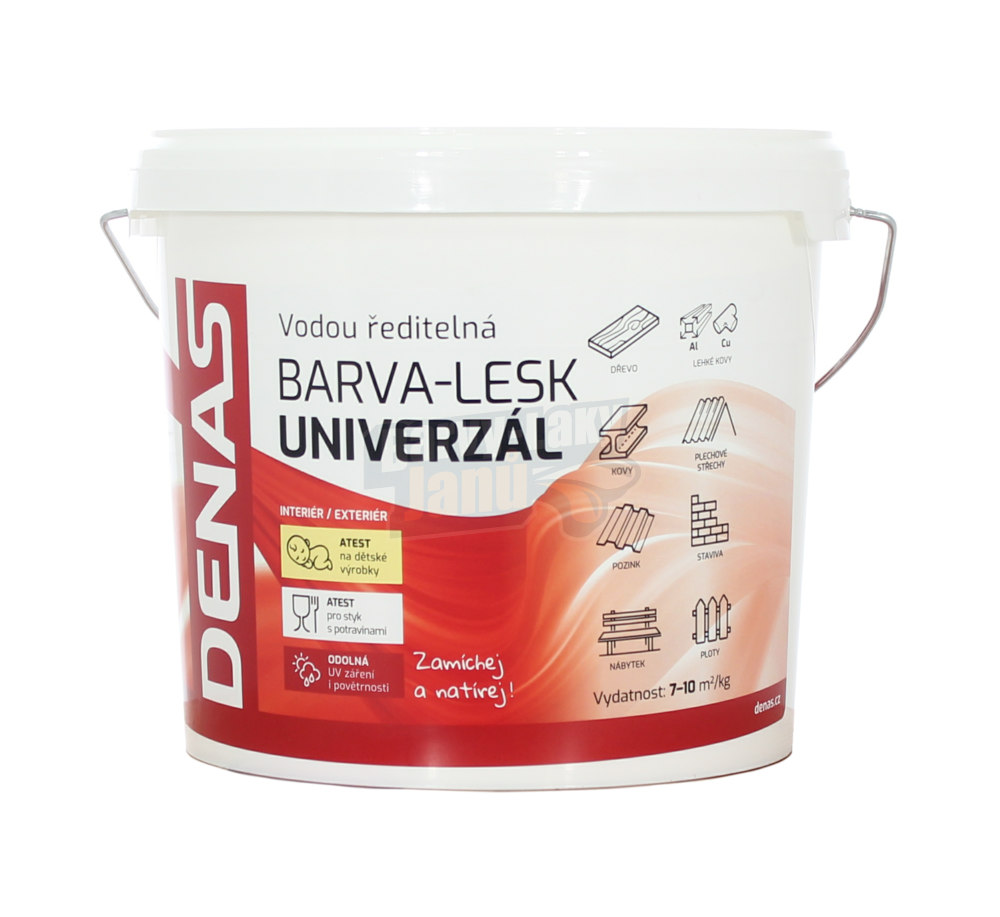 Pokud máte doma malé dítě, nejdůležitější vždy je, aby barvy byly bezpečné a netoxické. A Denas Univerzál je navíc ekologická, rychle schne a nezapáchá! Lesklou barvou Denas můžete upravit veškeré materiály v domácnosti bez obav, protože má atest na dětské hračky, styk s potravinami a pitnou vodou. Takže ho můžete použít v prostorách, kde jsou děti nebo domácí zvířátka, stejně tak i na dřevěné hračky nebo dětský nábytek.