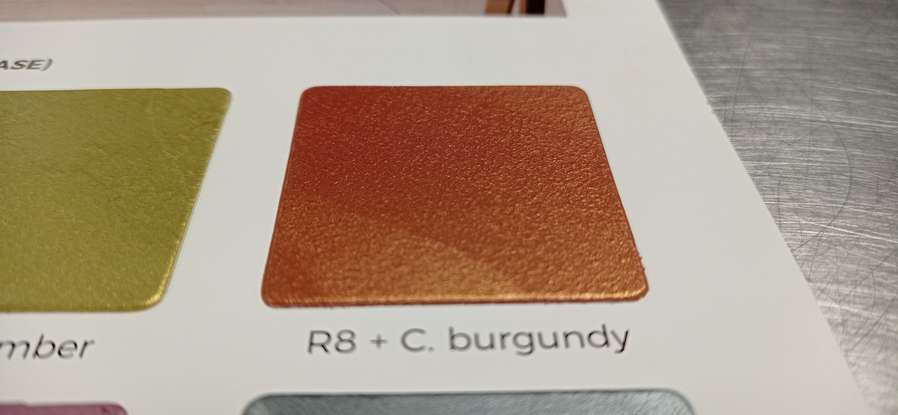 z nabídky na e-shopu bych Vám mohl doporučit: https://www.barvylakyjanu.cz/luxusni-dekoracni-barva-royal-silk-1l?vzornik-royal-silk=Burgundy (Vzorek na e-shopu moc nevypadá, v příloze posílám fotografii.) Pokud byste se ale mohla dostat k nám na prodejnu, máme tu dva nové produkty, které zatím nejsou na e-shopu a které by se Vám mohly také líbit: Minier a Decorust. Fotografie vzorků také posílám, ačkoliv nejsou moc vypovídající a chtělo by to vidět je osobně a posoudit sama. Ten Minier vypadá hodně "měděně.