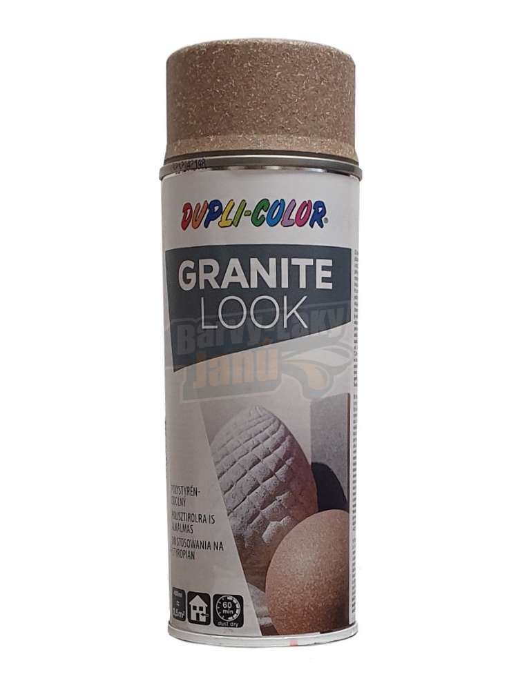 Lákají vás kamenné prvky v interiéru, nebo třeba připravujete divadelní kulisy a potřebujete kus žuly? Vysoce kryvý sprej Dupli Granit, obsahující plastické částečky, na povrchu předmětu vytvoří hrubou strukturu umělého kamene. Můžete ho nechat hrubě matný, nebo ho přelakovat pro lesklý vzhled. Vytvořte na zahradě nebo v domácnosti realistický žulový efekt pomocí granitového spreje Dupli Granit!