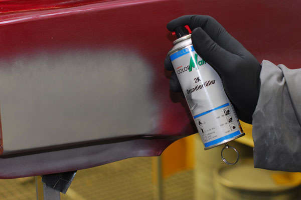 Jakou barvu si vybrat? Jednoduché pravidlo: snažíme si vybrat odstín plniče tak, abychom viděli, kde nám začíná a končí vrchní barva. Tedy, pokud stříkám černou hladkou, nevezmu si černý plnič, protože neuvídím, co už mám hotové a co ne.