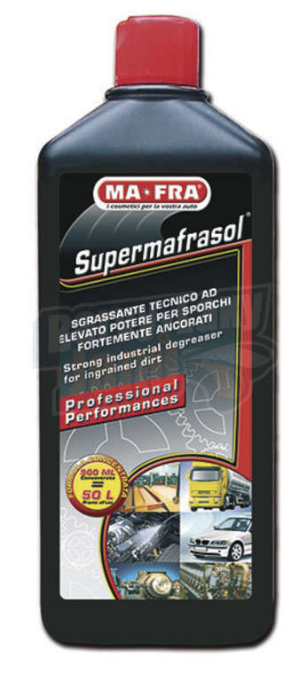 Extrémně silný odmašťovač Supermafrasol je jedničkou v nabídce Mafra. Díky svým vlastnostem odstraní z pórů všechny nečistoty i ty zapečené.Je to silný koncentrát, který těžko hledá konkurenci.