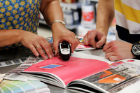 To, že vám poradíme a namícháme barvu dle vašich představ během pár minut, je samozřejmostí. Dokonce budete mít k dispozici tisíce barev od různých značek. Naší specialitou je ale fotospektometr. Pokud přijdete například s kusem závěsu, že chcete barvu ve stejném odstínu, přiložíme náš přístroj, který během pár okamžiků zjistí daný odstín, a všichni tak ušetříme čas s hledáním přesné kombinace barev.