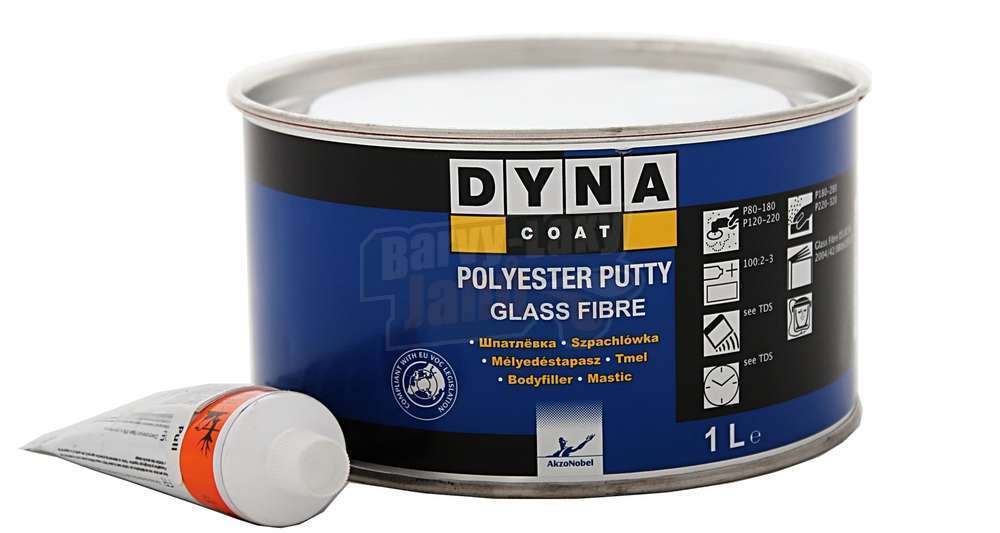 Povrch obruste smirkem 120, očistěte a odmastěte. Rozmíchejte si potřebné množství tmelu a a naneste špachtlí na podklad. Dvousložkový polyesterový tmel se skelným vláknem má zpracovatelnost 4-8 minut. Asi po 25 minutách ho můžete obrousit smirkem na plátně 180-320. Kit se skleným vláknem je velmi porézní, proto je nutné ho ještě přetmelit jemným finálním tmelem. Potom povrch očistěte a naneste plnič Dyna.